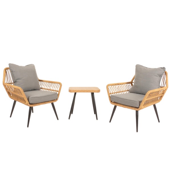 PROREGAL Poly-Rattan Garnitur, HxBxT 78x64x72 cm, Sitzhöhe 41cm, Dunkelgrau, Balkon-Set Gartengarnitur Sitzgruppe Stuhl Beistelltisch