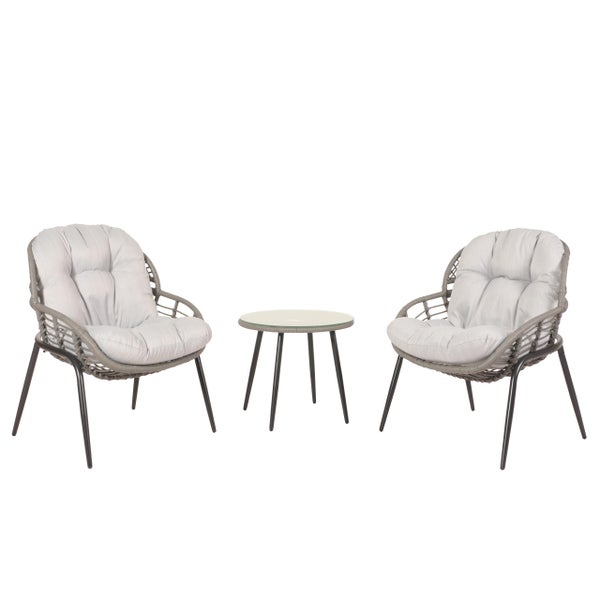 Das kompakte Set überzeugt durch sein harmonisches Zusammenspiel aus Funktionalität und Ästhetik. Die bequemen Stühle mit dichten Rattanstreben bieten angenehmen Halt und laden zum Verweilen ein, während der runde Beistelltisch eine praktische Ablagefläche bietet. Dank der wasserabweisenden Bezüge und robusten Verarbeitung eignet sich die Garnitur ideal für den Einsatz im Außenbereich. Die hochwertigen Polster lassen sich bei Bedarf abnehmen, was Reinigung und Pflege besonders einfach macht. Mit ihrer Kombination aus Stabilität, Komfort und zeitloser Optik ist diese Garnitur eine stilvolle Ergänzung für jeden Außenbereich.Weitere technische Eigenschaften: