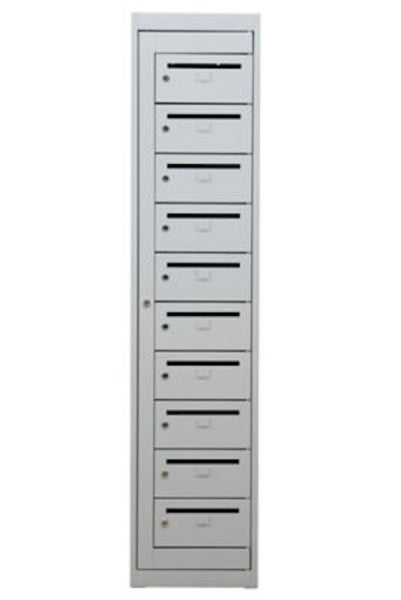 Der Postverteilerschrank ist hervorragend für Poststellen oder Empfangsbereiche oder anderern Stelle in jeglichen Firmen oder Behörden geeignet. Die pulverbeschichtete Konstruktion ist leicht in der Reinigung und zugleich widerstandsfähig und langlebig.