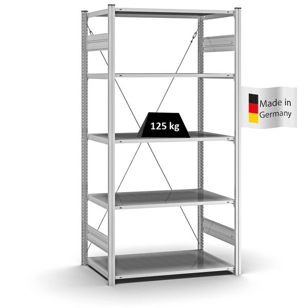 PROREGAL Profi Lagerregal Stecksystem T-Profil Grundregal HxBxT 200 x 100 x 60 cm Fachlast 125 kg Verzinkt