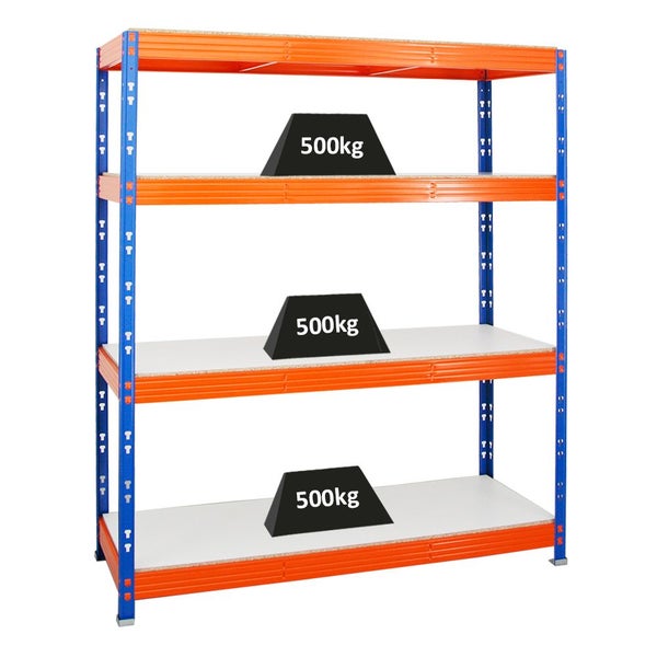 PROREGAL Profi Schwerlastregal Rhino HxBxT 180 x 160 x 60 cm 4 Melamin-Ebenen 16mm Fachlast 500 kg Blau/Orange