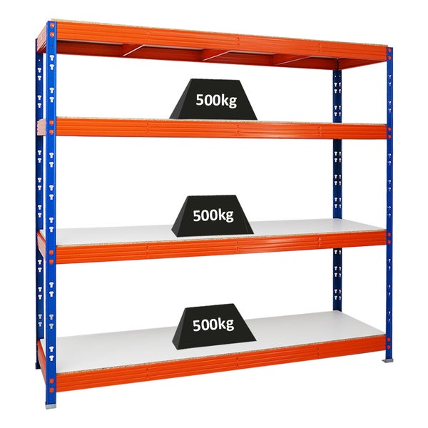 PROREGAL Profi Schwerlastregal Rhino HxBxT 180 x 200 x 60 cm 4 Melamin-Ebenen 16mm Fachlast 500 kg Blau/Orange