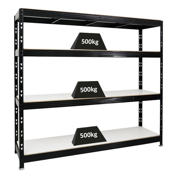 PROREGAL Profi Schwerlastregal Rhino HxBxT 180 x 200 x 60 cm 4 Melamin-Ebenen 16mm Fachlast 500 kg Schwarz