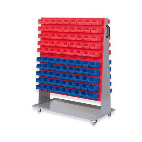 PROREGAL ProfiDrop Systemwagen auf Rollen mit Roten Systemplatten und 180 x Rote und Blaue Sichtlagerbox 1.0 HxBxT 130 x 100 x 50 cm