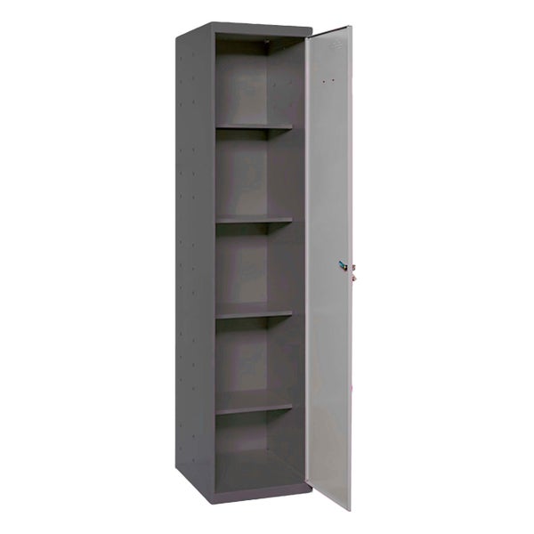 Der Metallschrank AMEGO von PROREGAL ist 180 cm hoch und walhweise in 40, 60 und 80 cm Breite verfügbar. Der Schrank hat ein Schloss mit Schlüssel und ist bestens als Multifunktionsschrank zum Lagern von beispielsweise Putzmitteln geeignet.