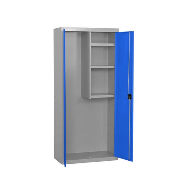 Der Metallschrank AMEGO von PROREGAL ist 180 cm hoch und walhweise in 40, 60 und 80 cm Breite verfügbar. Der Schrank hat ein Schloss mit Schlüssel und ist bestens als Multifunktionsschrank zum Lagern von beispielsweise Putzmitteln geeignet.