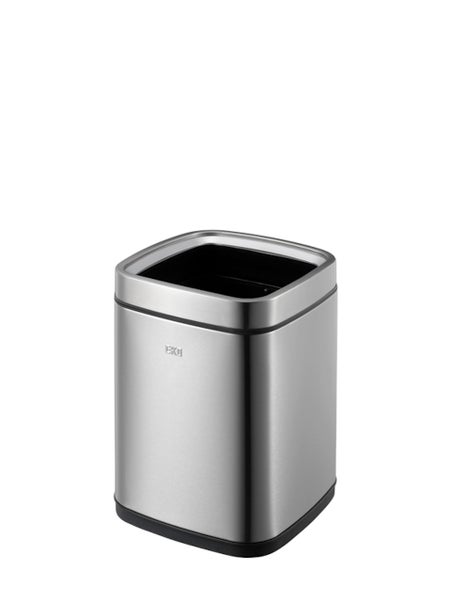 Quadratischer Abfalleimer aus mattem Edelstahl mit offenem Einwurf. Ausgestattet mit einem Kunststoffinneneimer und einer fingerabdruckfesten Beschichtung. Durch Entfernen des losen Deckels kann der Abfallbeutel leicht ausgewechselt werden. Die Gummikappen auf der Unterseite schützen und halten den Abfallbehälter an Ort und Stelle.
