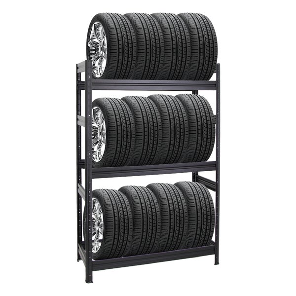 Das Reifenregal Dino von PROREGAL ist opitmal für die Lagerung der Sommer- und Winterreifen. Das stabile Stahlregal bietet mit einer Breite von 120cm Platz für bis zu 12 Reifen (15-Zoll Reifen). Somit können Sie problemlos Winter- und Sommerreifen oder die Reifen mehrerer Autos aufbewahren. Die drei Ebenen können variabel in das Regal eingehängt/ gesteckt werden und so können Sie das Regal genau für Ihre Anforderungen individualisieren.