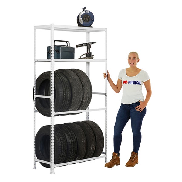 PROREGAL Reifenregal mit Ablagefläche Metal Shark NO.2 HxBxT 200 x 100 x 40 cm 12 Reifen Weiß