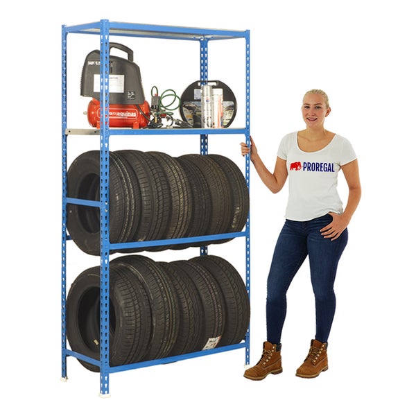 PROREGAL Reifenregal mit Ablagefläche Metal Shark NO.2 HxBxT 200 x 120 x 40 cm 12 Reifen Blau