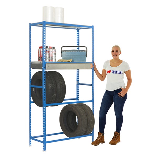 PROREGAL Reifenregal mit Schubfach und Ablagefläche Metal Shark NO.3 HxBxT 200 x 100 x 40 cm 12 Reifen Blau