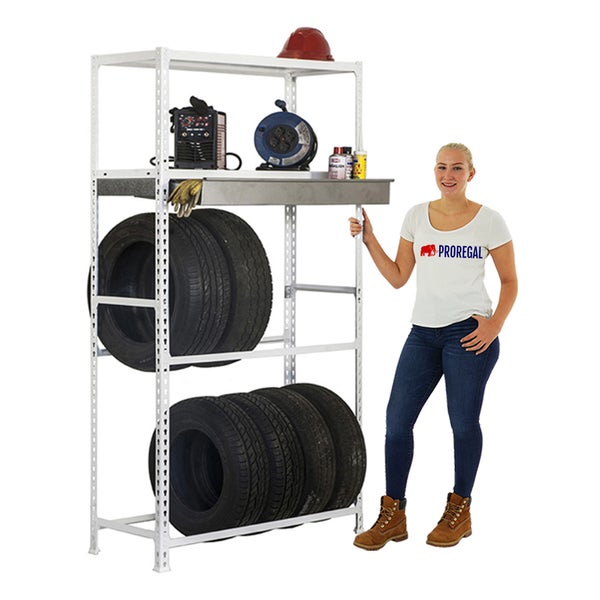 PROREGAL Reifenregal mit Schubfach und Ablagefläche Metal Shark NO.3 HxBxT 200 x 120 x 40 cm 12 Reifen Weiß