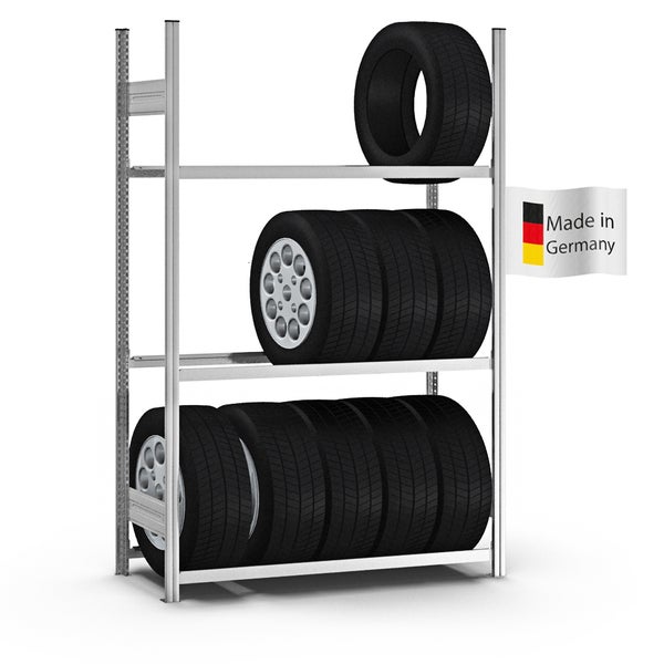 PROREGAL Reifenregal Stecksystem T-Profil Grundregal HxBxT 200 x 130 x 40 cm 3 Ebenen Fachlast 150 kg Verzinkt