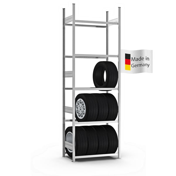 PROREGAL Reifenregal Stecksystem T-Profil Grundregal HxBxT 300 x 100 x 40 cm 5 Ebenen Fachlast 150 kg Verzinkt