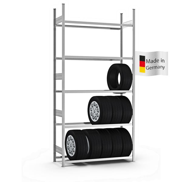 PROREGAL Reifenregal Stecksystem T-Profil Grundregal HxBxT 300 x 150 x 40 cm 5 Ebenen Fachlast 150 kg Verzinkt