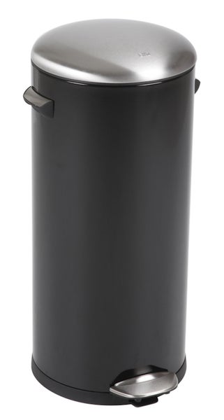 Schicke Tritt-Mülleimer mit Markanten Griffen und Kugelkappe. Retro-Look. Mit Kunststoff-Inneneimer und Gedämpft Schließendem Deckel.