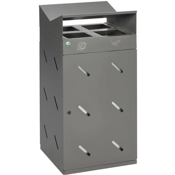 PROREGAL Robuste Wertstoffsammlstation 4 Fach Einwurf 200 Liter HxBxT 118,5 x 58 x 58 cm Verzinkter Stahl Eisenglimmer