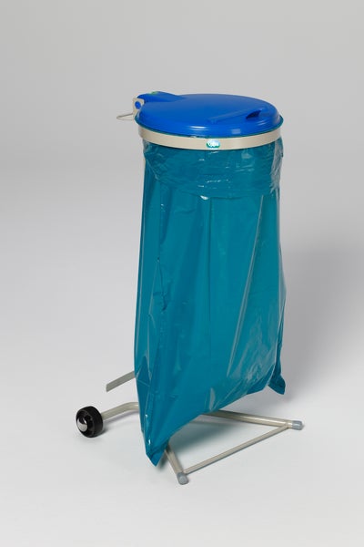 PROREGAL Robuster Abfallsammler Für Wertstoffsortierung 1 Fach Fahrbar Mit Rollen 120 Liter HxBxT 92 x 50 x 44 cm Stahl Grau Blau