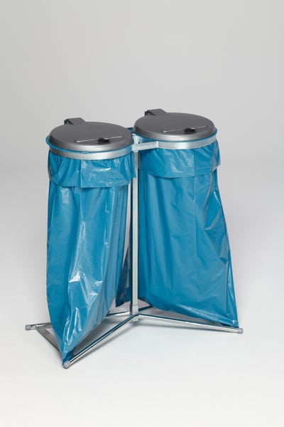 PROREGAL Robuster Doppel Abfallsammler Mit Kunststoff Deckel Stationär 2 x 120 Liter HxBxT 98 x 85 x 48 cm Stahl Verzinkt Silber
