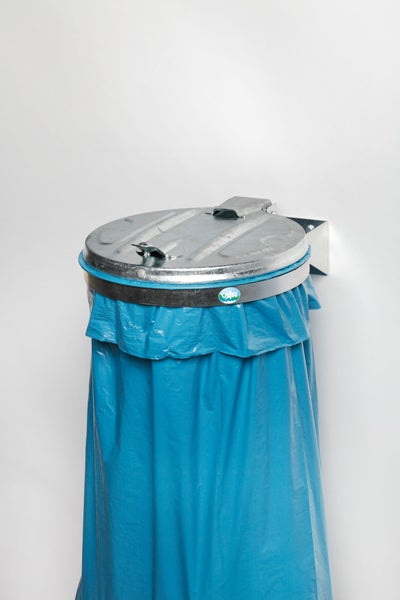 PROREGAL Robuster Einzel Abfallsammler Mit Metall Deckel Wandhalterung 35 cm Einwurföffnung B x T 50 x 48 cm Stahl Verzinkt Verzinkt