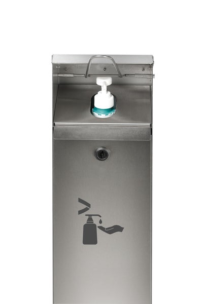 PROREGAL Robuster Handdesinfektionsspender Mit Hubmechanismus Bodenmontage HxBxT 115 x 18 x 13 cm Edelstahl Silber