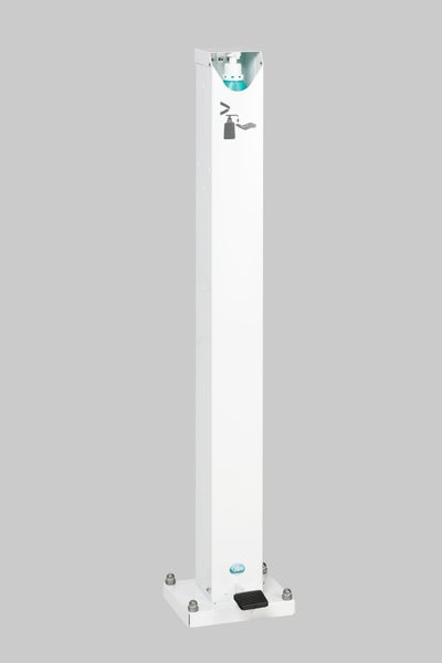 PROREGAL Robuster Handdesinfektionsspender Mit Pedal Bodenmontage HxBxT 120 x 34 x 34 cm Verzinkter Stahl Weiß