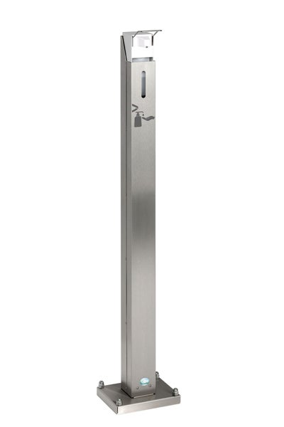 PROREGAL Robuster Handdesinfektionsspender Mit Spender Bodenmontage HxBxT 120 x 18 x 23 cm Edelstahl Silber