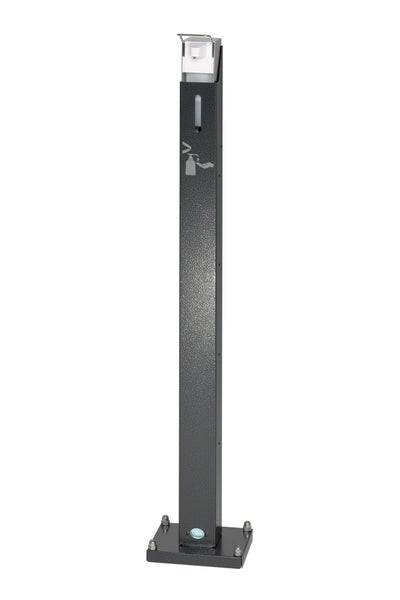 PROREGAL Robuster Handdesinfektionsspender Mit Spender Bodenmontage HxBxT 120 x 18 x 23 cm Verzinkter Stahl Grau