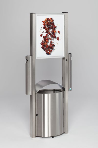 PROREGAL Robuster Kombiascher Mit Schutzdach Werbefläche Für Aussenbereich 50 Liter HxBxT 180 x 71 x 35 cm Edelstahl