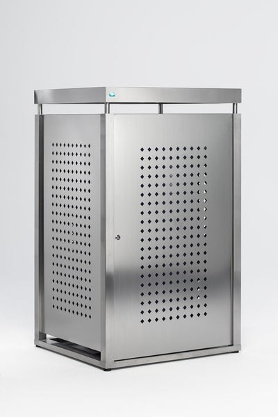 PROREGAL Robuster Müllbehälterschrank Mit Doppelbartschloss 240 Liter HxBxT 136,5 x 85 x 77 cm Edelstahl Silber