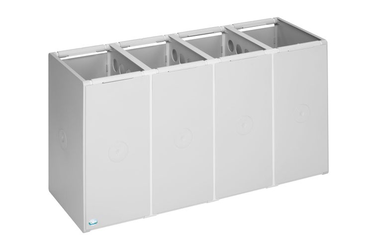 PROREGAL Robustes Abfallbehälter Und Wertstoffsammelsystem 4 Fach Ohne Deckel 40 Liter HxBxT 57 x 101 x 40,5 cm Kunststoff Grau