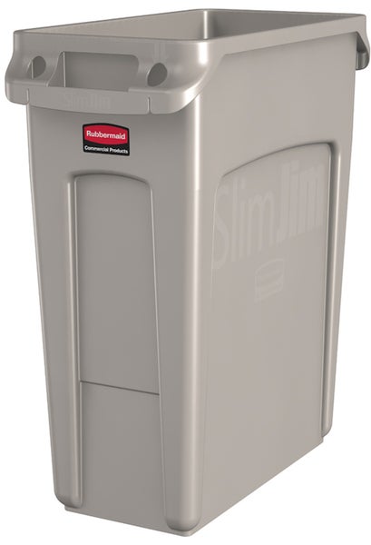 PROREGAL Rubbermaid Slim Jim Mülleimer Mit Belüftungskanälen 60 Liter HxBxT 63,5 x 28 x 56 cm Beige