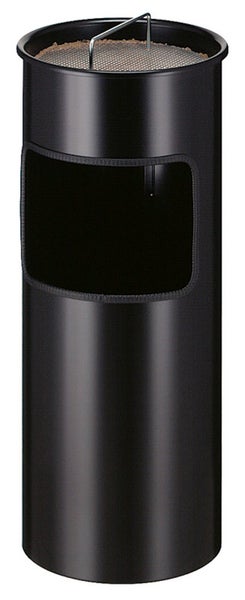 Runder feuerfester Ascher-Papierkorb mit Inneneimer aus Metall. Ausgestattet mit schwarzem Einsatz und Sieb. Inklusive Löschsand.