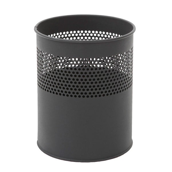 PROREGAL Runder Halbperforierter Papierkorb Aus Metall 10 Liter HxØ 27,5 x 23,5 cm Schwarz