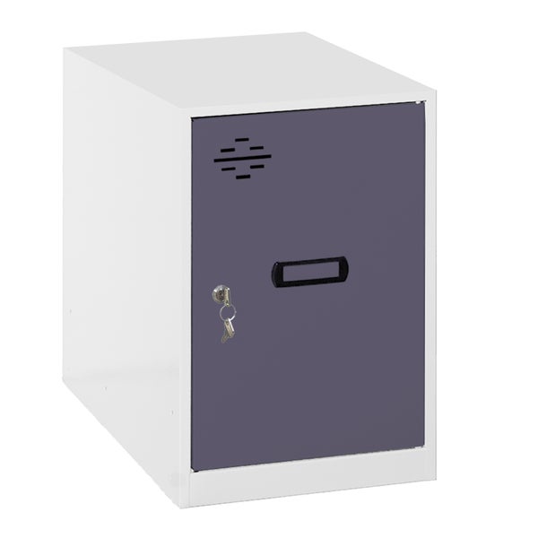 Der Schließfachwürfel AMEGO von PROREGAL ist 47,5 cm (ohne Standfüße) und 57,5 cm (mit Standfüße) hoch und walhweise in 30 cm oder 40 cm Breite verfügbar. Der Würfel hat ein Schloss mit Schlüssel und ist bestens als Umkleideschrank geeignet.