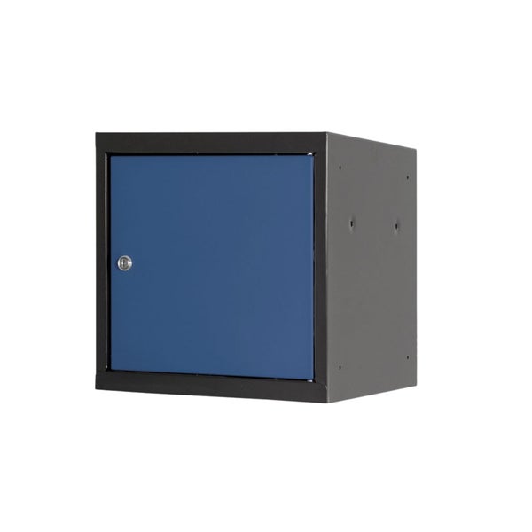 PROREGAL Schließfachwürfel Blocky mit Zylinderschloss + 2 Schlüssel | HxBxT 40x40x40cm | Anthrazit/Enzianblau | Tresor, Schließfach