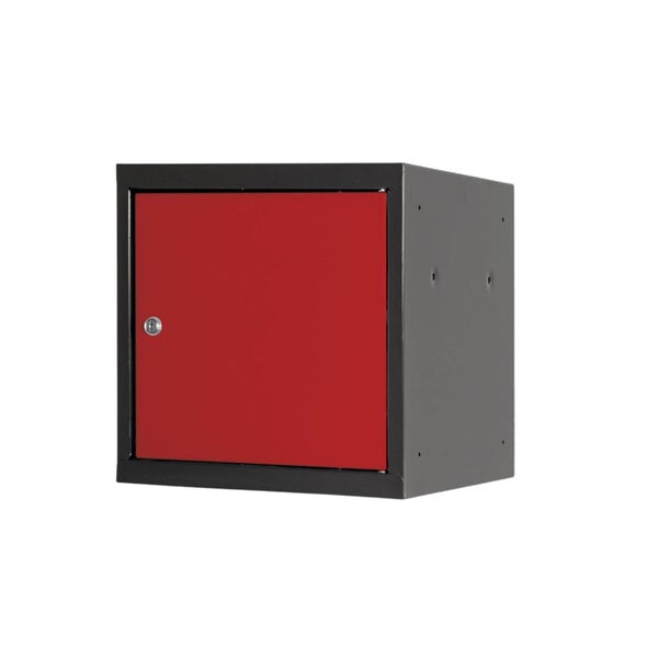 PROREGAL Schließfachwürfel Blocky mit Zylinderschloss + 2 Schlüssel | HxBxT 40x40x40cm | Anthrazit/Verkehrsrot | Tresor, Schließfach