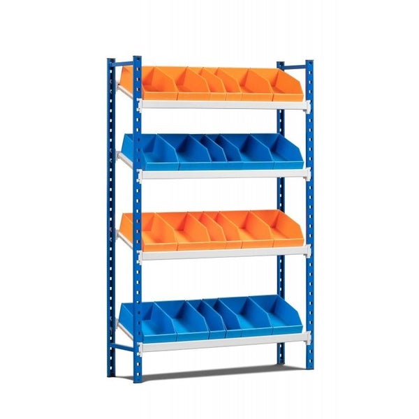 PROREGAL Schrägbodenregal Maximus HxBxT 160 x 100 x 40 cm 4 Ebenen Fachlast 130 kg Lichtblau-Lichtgrau