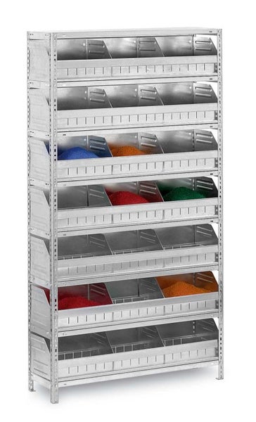 PROREGAL Schüttgutregal Schraubsystem Grundregal HxBxT 185 x 100 x 30 cm 8 Ebenen Fachlast 60 kg 21 Schüttgutfächer Verzinkt