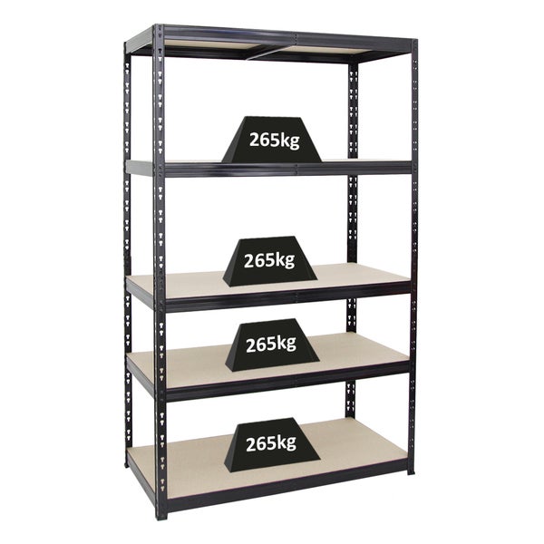 PROREGAL Schwerlastregal Giant Tiger HxBxT 200 x 120 x 60 cm Fachlast 265 kg 5-Ebenen Schwarz