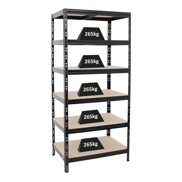 PROREGAL Schwerlastregal Giant Tiger HxBxT 200 x 90 x 60 cm Fachlast 265 kg 6-Ebenen Schwarz