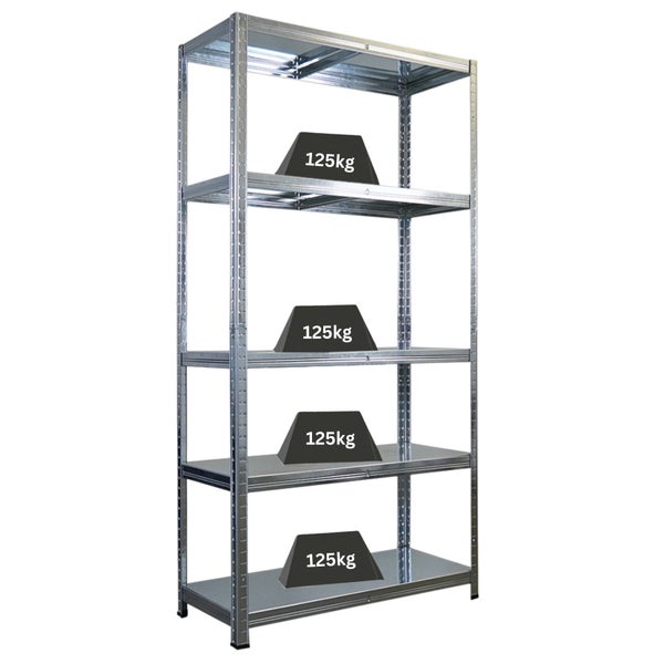 PROREGAL Schwerlastregal Ragnar für Gesamtlast 625kg Maße: 180x90x40, 5 Stahlplatten-Ebenen, Verzinkt, Kellerregal Metallböden, Steckregal, Garagenregal, Lagerregal