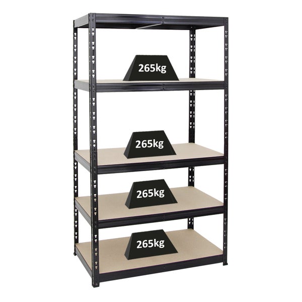 PROREGAL Schwerlastregal Tiger HxBxT 180 x 100 x 60 cm Fachlast 265 kg 5-Ebenen Schwarz