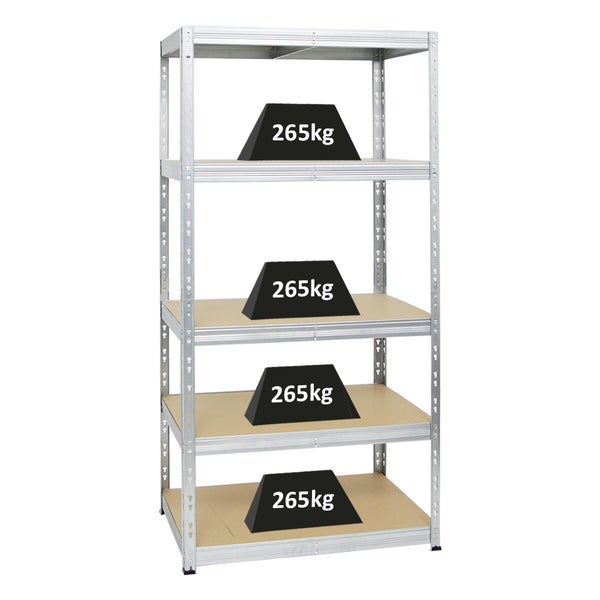 PROREGAL Schwerlastregal Tiger HxBxT 180 x 90 x 60 cm Fachlast 265 kg 5-Ebenen Verzinkt
