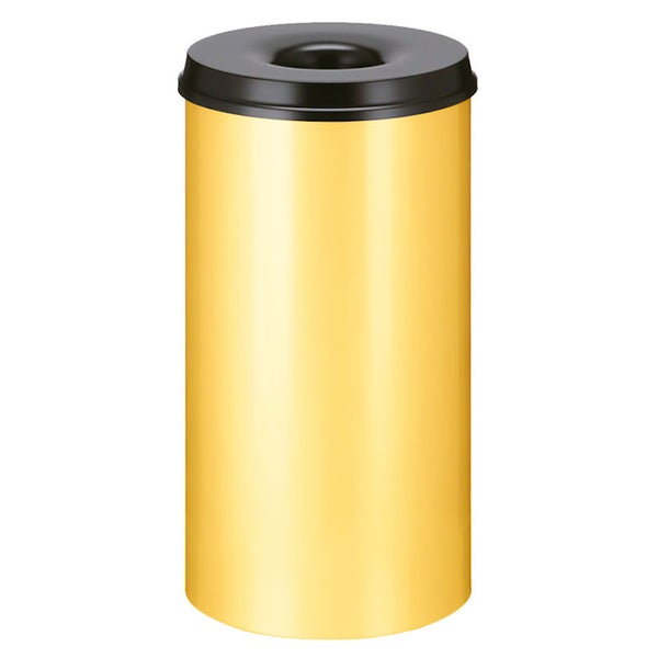 PROREGAL Selbstlöschender Papierkorb & Abfallsammler Aus Metall 50 Liter HxØ 63 x 33,5 cm Gelb & Kopfteil Schwarz