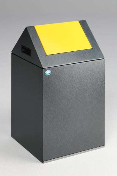 PROREGAL Selbstlöschender Wertstoffsammler Spitz Mit Einwurfklappe 43 Liter HxBxT 60 x 32 x 32 cm Verzinkter Stahl Grau Gelb