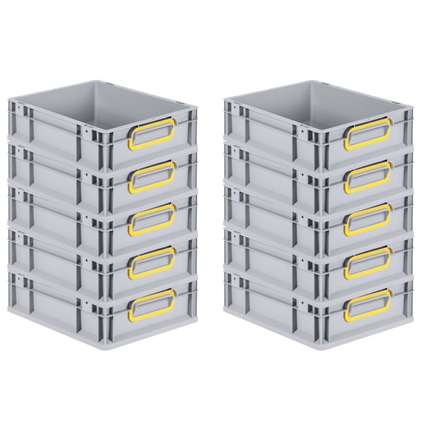 PROREGAL Spar Set 10x Eurobox Nextgen Color HxBxT 12 x 30 x 40 cm 11 Liter Griffe Gelb Geschlossen Glatter Boden Eurobehälter Transportbox
