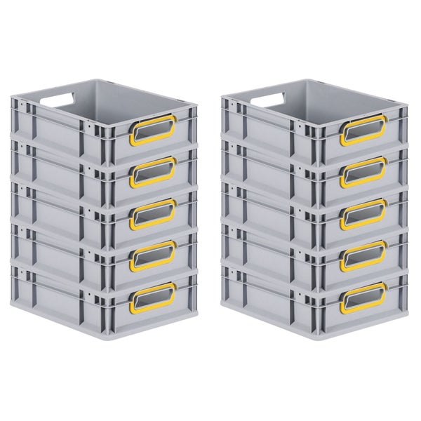 PROREGAL Spar Set 10x Eurobox Nextgen Color HxBxT 12 x 30 x 40 cm 11 Liter Griffe Gelb Offen Glatter Boden Eurobehälter Transportbox