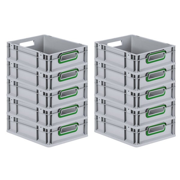 PROREGAL Spar Set 10x Eurobox Nextgen Color HxBxT 12 x 30 x 40 cm 11 Liter Griffe Grün Offen Glatter Boden Eurobehälter Transportbox