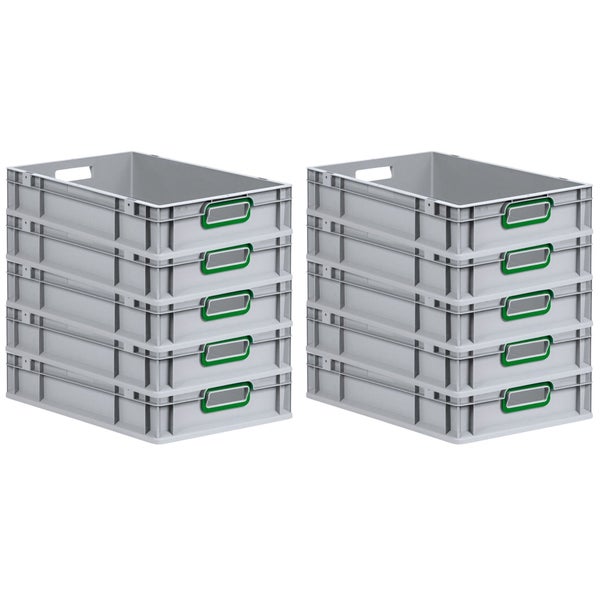 PROREGAL Spar Set 10x Eurobox Nextgen Color HxBxT 12 x 40 x 60 cm 23 Liter Griffe Grün Offen Glatter Boden Eurobehälter Transportbox